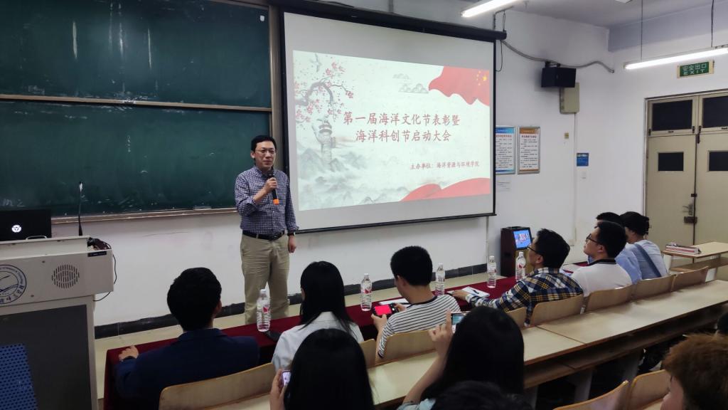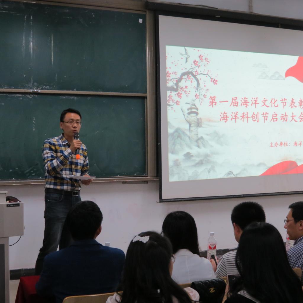 5月19日晚beat365中文官方网站在昌黎校区主教学楼C108举行了海洋文化节表彰暨海洋科创节开幕大会,beat365中文官方网站副院长王青林,学工办主任孙胜显,办公室主任刘升,教师代表,获奖学生代表出席此次大会。
