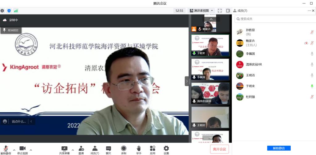 4月25日,beat365中文官方网站分别召开与山东宝来利生物工程股份有限公司、清原农冠集团访企拓岗座谈会。学校党委副书记李佩国、学院党委书记于明来、学院党委副书记孙胜显、学院副院长张文香、水产教学部主任葛慕湘、海洋生物资源教学部主任杜利强、2022届毕业生班主任、学工办就业负责人共同参加并作交流。会上,校企双方介绍了各自的情况,并针对行业需求、人才培养等方面开展了深入的交流