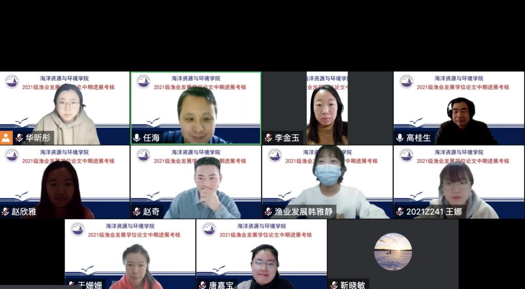 11月19日上午,我院召开2021级渔业发展专业硕士研究生中期考核报告会。此次报告会由任海、高桂生、靳晓敏、于姗姗等四名教师组成考核组,任海副教授主持报告会。