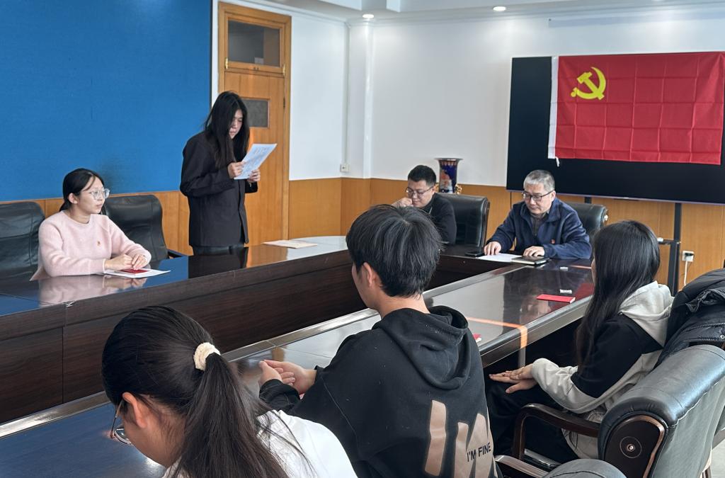 2025年12月9日,beat365中文官方网站学生党支部在A301会议室隆重举行预备党员入党宣誓仪式。学院党委领导、入党积极分子代表及16名新发展的预备党员参加仪式仪式由学生党支部书记李国伟主持。