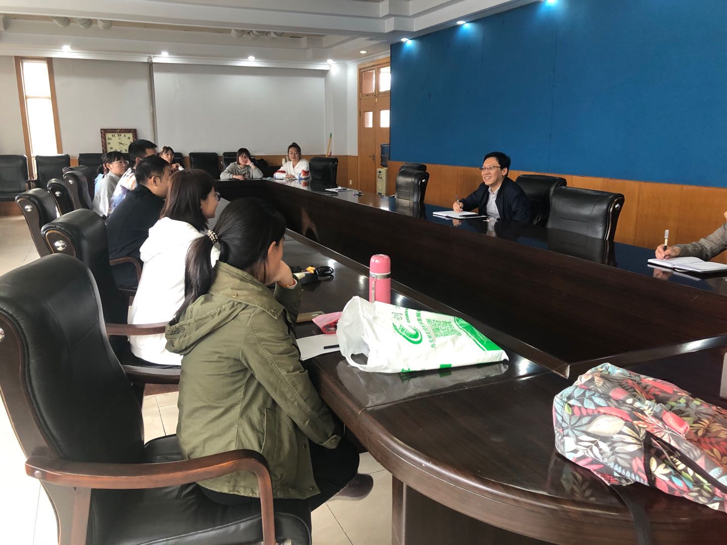 孙胜显老师强调学院十分重视第一届毕业生,将有针对性的开展系列工作支持同学们的考研和就业,希望班干部积极主动地发挥带头作用,同时做好学院和同学之间的桥梁和纽带,和学院共同努力做好21届毕业生工作。