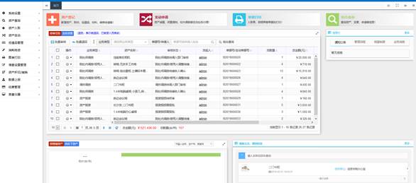 输入用户名(工号)、密码(初始密码123450),进行验证,个别资产管理员若无工号,则输入姓名汉字、密码即可登录系统。登录后出现如下画面,注意,上面窗口如长时间不操作,应按F5对页面进行刷新。